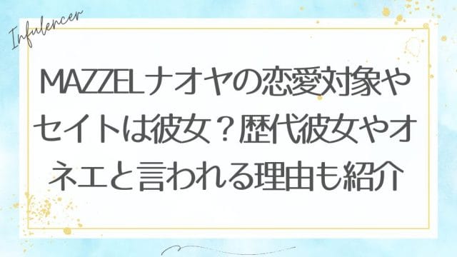 MAZZELナオヤの恋愛対象やセイトは彼女?歴代彼女やオネエと言われる理由も紹介