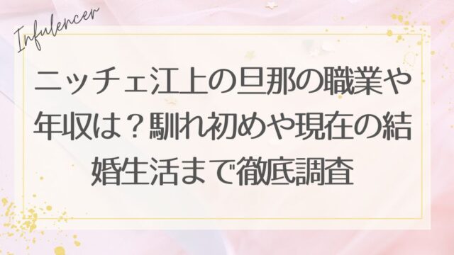 ニッチェ江上の旦那の職業や年収は?馴れ初めや現在の結婚生活まで徹底調査