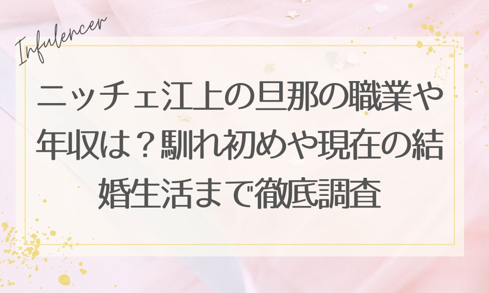 ニッチェ江上の旦那の職業や年収は?馴れ初めや現在の結婚生活まで徹底調査